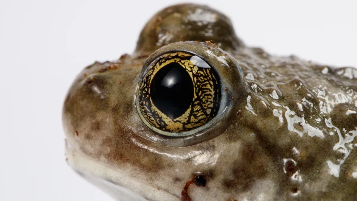 These frogs are found from northern California to northwestern Baja California, residing in mixed forests, shrublands, grasslands, inland wetlands, river floodplains, and sandy washes. Vertical pupils cut through gold-colored eyes that bulge from their stocky bodies, and their short legs end in feet with keratinous bumps, the eponymous spades that help these frogs dig. “These frogs spend much of their lives underground, avoiding hot, dry conditions by heading into mammal burrows, or digging their own burrows into soft, sandy soil,” says Pauly.